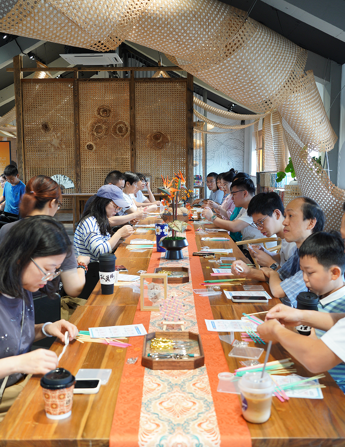 在竹編杯墊手作體驗環節,現場氣氛熱烈非凡。會員們圍坐在一起,面前擺放著竹篾、剪刀等工具,老師耐心講解、親手示范,大家認真學習,眼睛緊盯著老師的動作,手中的竹篾在指尖穿梭,遇到困難時,大家相互交流、互相請教,經過一番努力,一個個獨具創意的竹編杯墊逐漸成型,有的古樸質感、有的編織成獨特紋理,展現出了會員們的創新思維。圍爐冰茶是夏天的特色項目,大家一邊品嘗著大涼山酸奶,搭配精致茶點和水果,一邊分享工作生活中的趣事。
